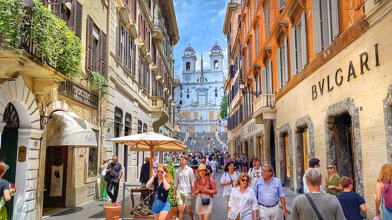 The Spanish Steps, a monumental staircase of 135 steps, connect the Piazza di Spagna at the base with the Trinità dei Monti church at the top. This iconic location is a great spot for a photo and offers a bit of people-watching as locals and tourists alike gather to enjoy the view. The area is also known for its high-end shopping streets and charming cafes.