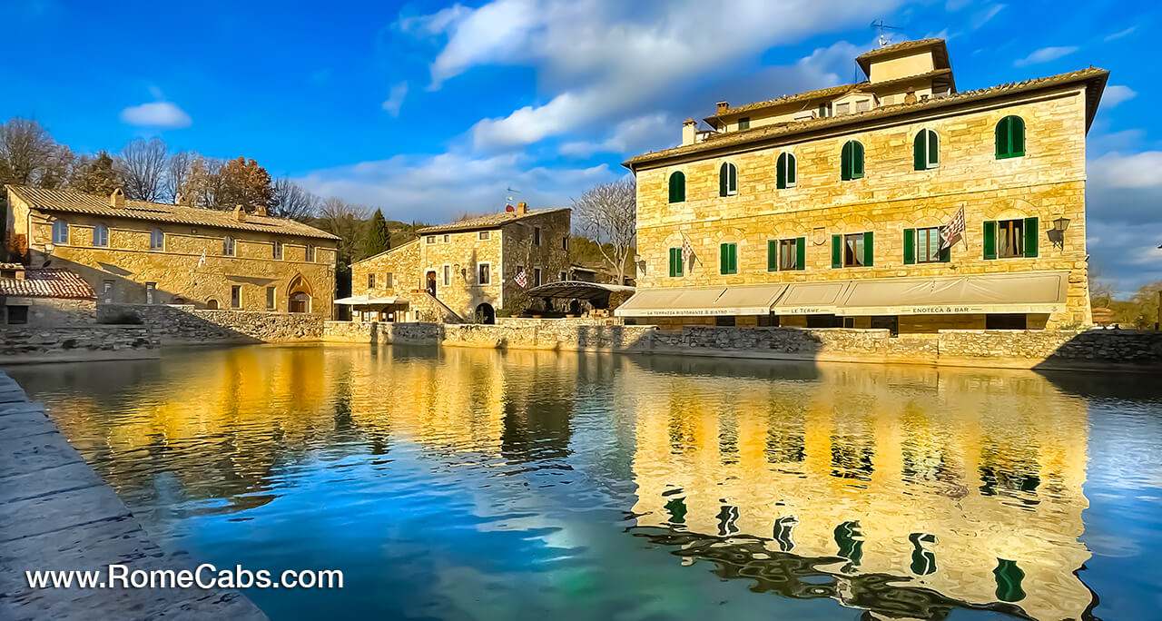 Buongiorno and welcome to RomeCabs Italy Travel Blog! For a unique and restorative experience, visit Bagno Vignoni, a picturesque village renowned for its thermal baths since Roman times. This charming village, nestled in the heart of Tuscany’s Val d’Orcia, offers a blend of historical allure and natural beauty. The centerpiece of Bagno Vignoni is its large thermal pool, located in the main square and surrounded by medieval buildings, creating a serene and enchanting atmosphere. Here’s what you need to know about Bagno Vignoni, a tranquil haven of thermal waters.