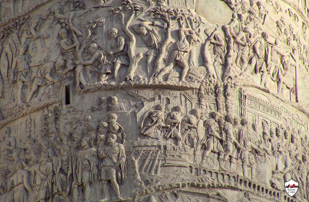 Buongiorno and welcome to the RomeCabs Rome Travel blog! Trajan’s Column is a towering emblem of Rome’s imperial grandeur, a remarkable architectural and artistic achievement that has intrigued historians, artists, and travelers for centuries. Completed in 113 AD during the illustrious reign of Emperor Trajan, this iconic monument stands as more than just a marvel of Roman engineering; it serves as a monumental testimony to Roman military prowess and Trajan’s enduring legacy.