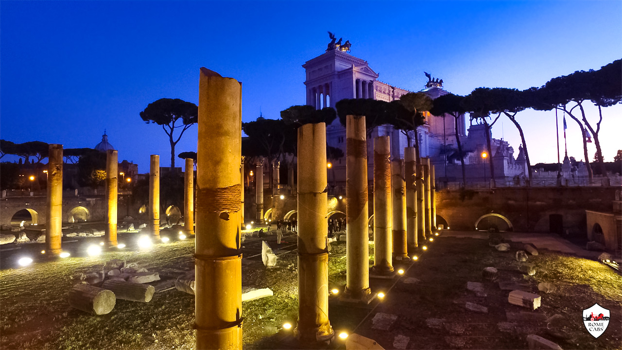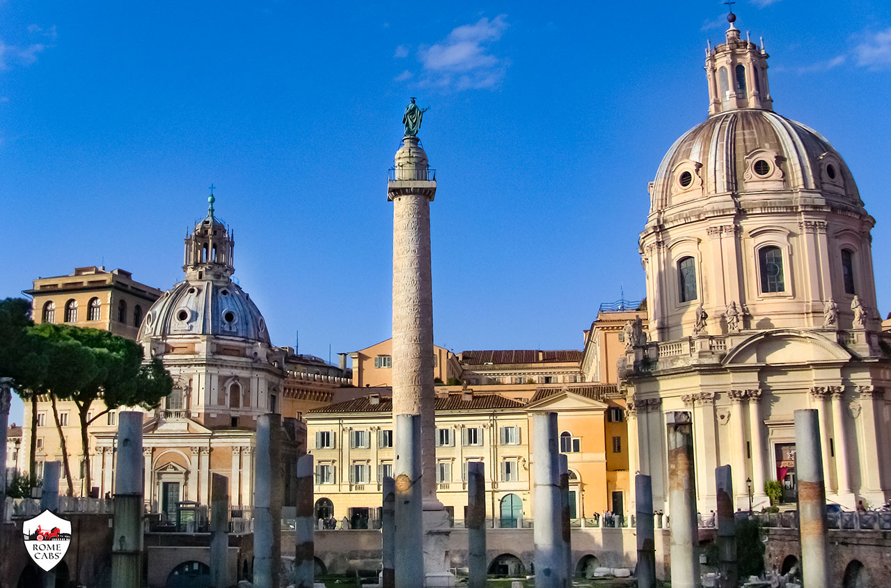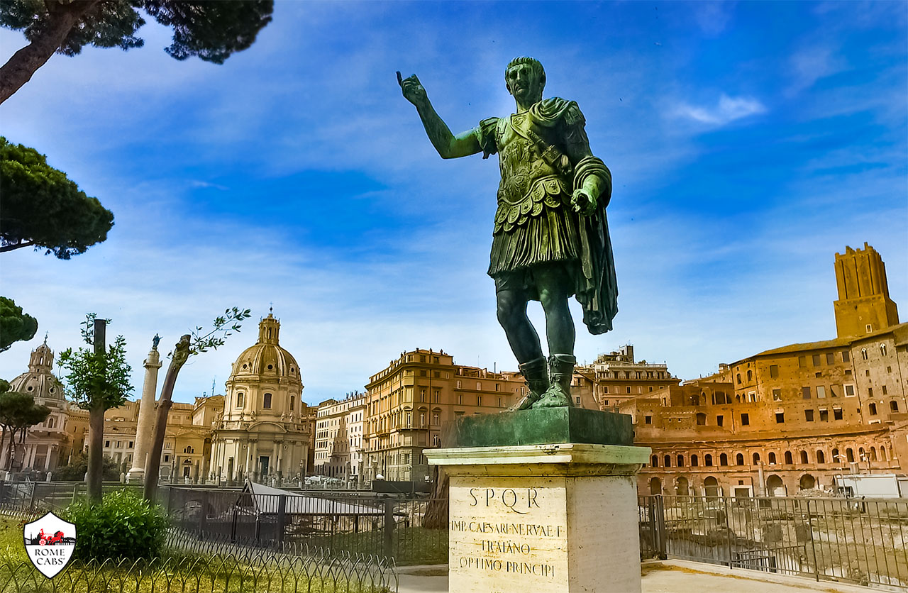 Buongiorno and welcome to the Rome Cabs Travel Blog! Today, we take you on a journey through one of ancient Rome’s most awe-inspiring sites: Trajan’s Forum – a pinnacle of Roman architectural and civic mastery. Situated near the iconic Trajan’s Column, this monumental complex, completed in 113 AD during the illustrious reign of Emperor Trajan, represents the pinnacle of Roman imperial ambition and architectural mastery. Far more than a mere symbol of power, Trajan’s Forum was a vibrant center for administrative, legal, and cultural activities, embodying the Roman Empire’s unparalleled expertise in urban planning and public architecture.