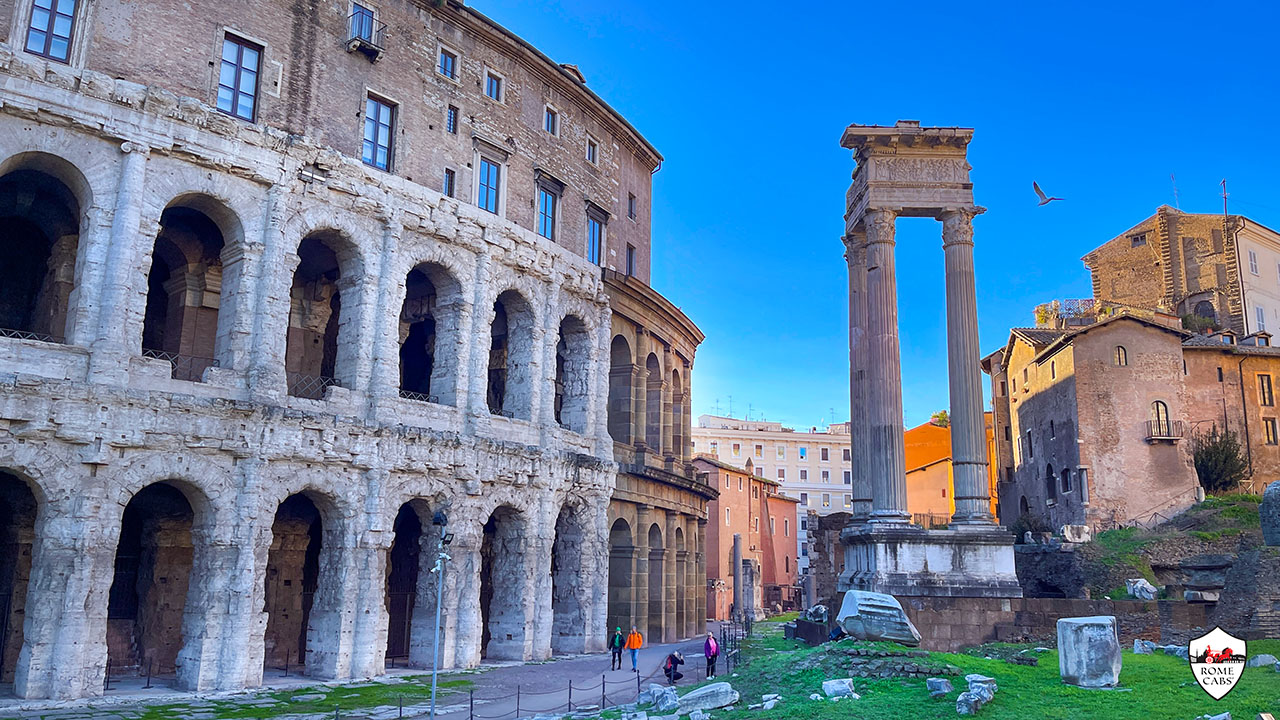Nearby, the Theater of Marcellus, completed in 13 BC, stands as one of Rome’s grandest ancient structures. This theater was one of the largest in Rome and served as a significant precursor to the Colosseum. Its architectural design and scale are still impressive today, showcasing the grandeur of Roman entertainment venues.