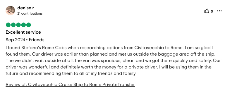 10. RomeCabs Customer Reviews: Trusted by Cruisers for Civitavecchia Transfers