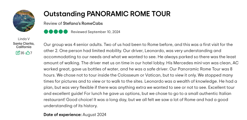 The thousands of 5-star reviews we’ve received on RomeCabs Tours and Transfers reflect our unwavering dedication to providing exceptional customer service.