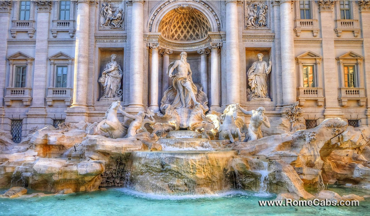 Located at the intersection of three streets (hence the name “Trevi“), this magnificent fountain is an essential stop on the RomeCabs Panoramic Tour, offering a perfect blend of beauty, history, and legend.